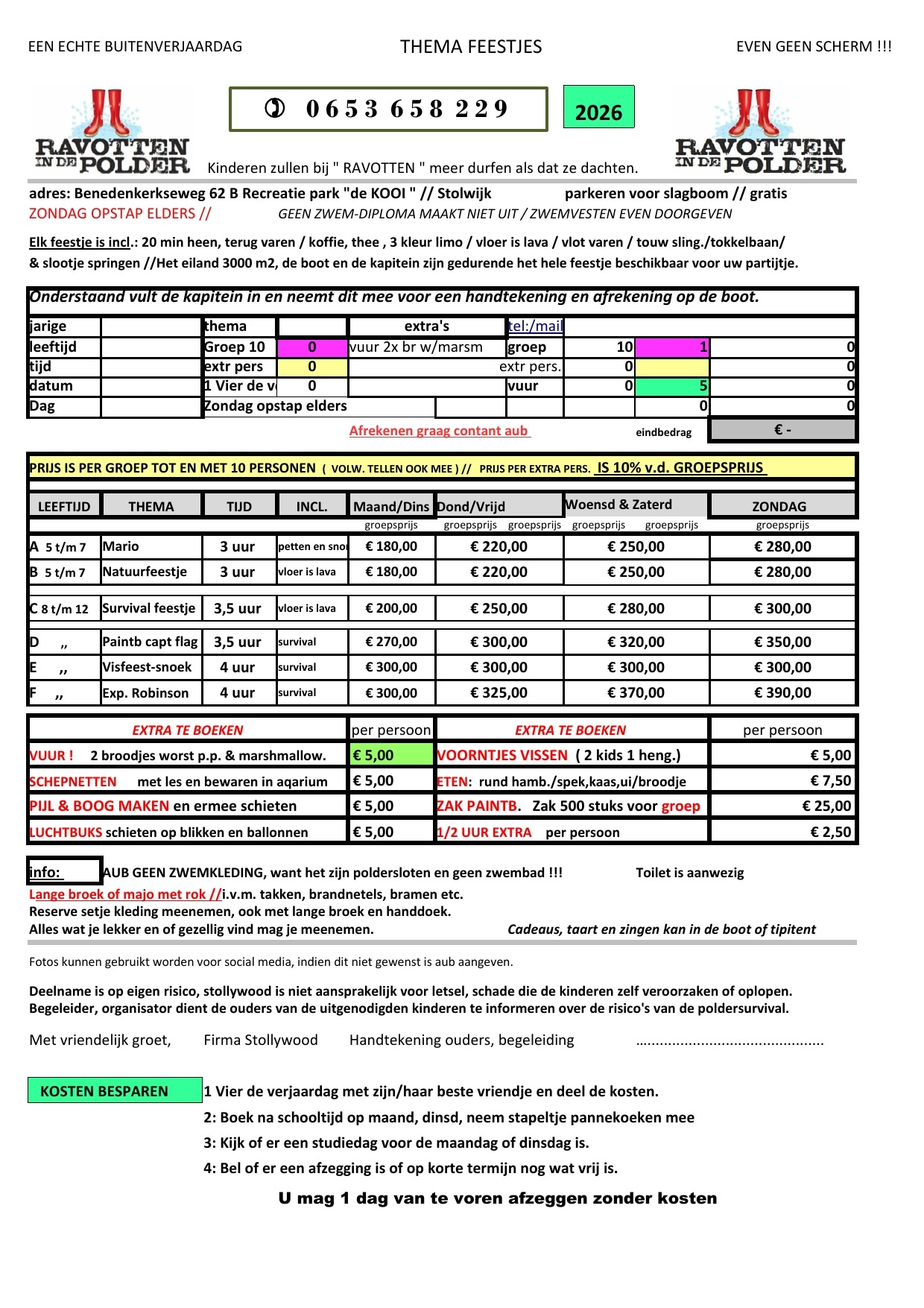 Prijslijst Kinderfeestjes